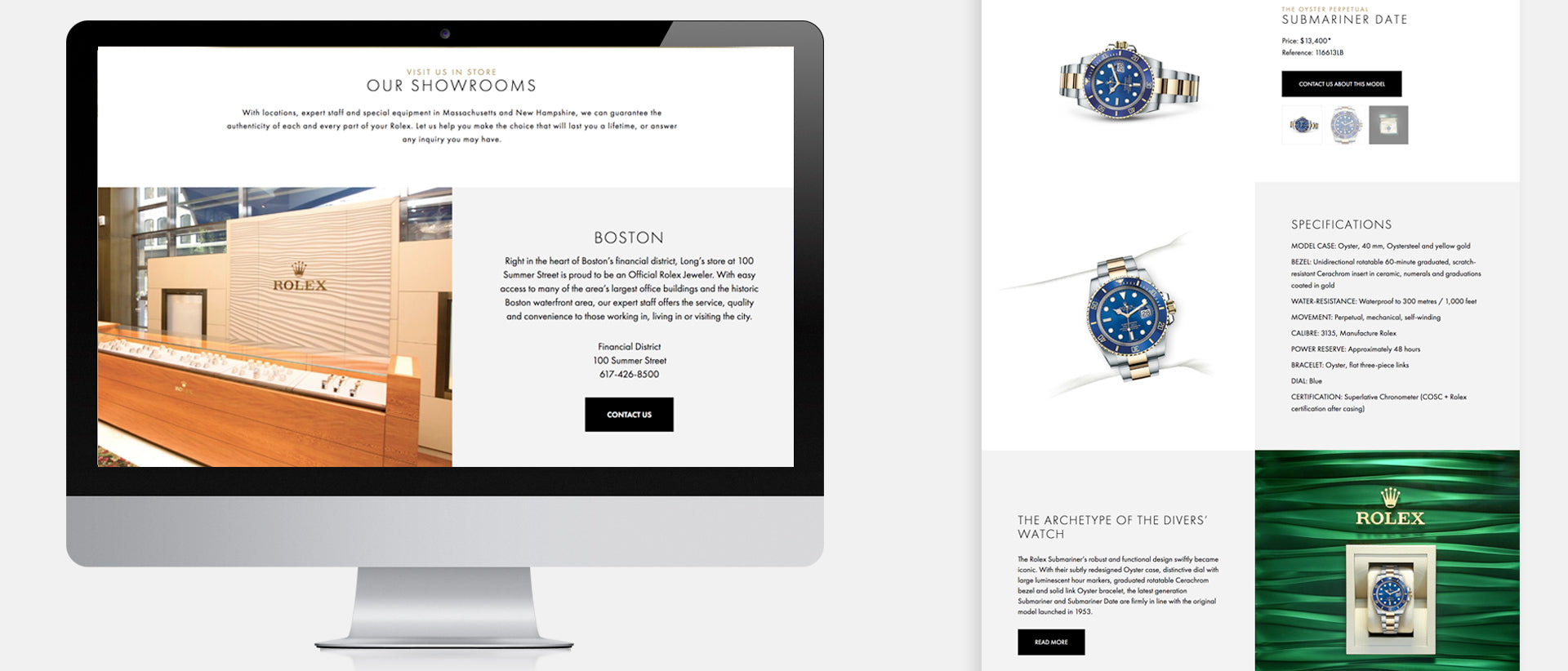 With five locations across the Northeast, New England based Long’s Jewelers has been serving the public as a full-service jeweler since 1878. As an official Rolex jeweler, Long’s was invited to present Rolex watches within their online store experience, showcasing the superb craftsmanship of these luxury watches.